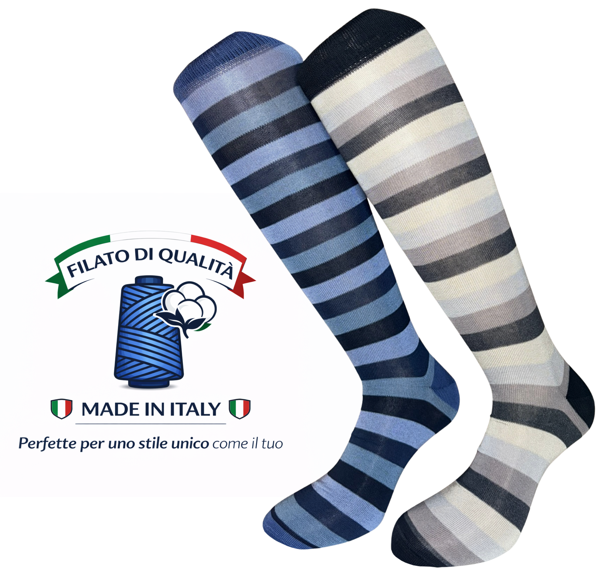 Grazie all’utilizzo di Cotone di Alta Qualità, le calze risultano al tatto lisce con un’alta resa coloristica grazie a toni intensi e brillanti.